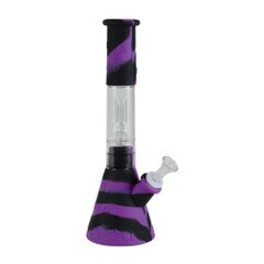 14" Silicone Water Pipe Assorted Colors-Slanted 2 piece with honeycomb ice catch